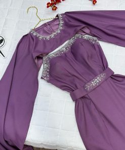 فستان سهرة من قماش التفته بلون مميز ومذهل يتميز بتصميم رائع