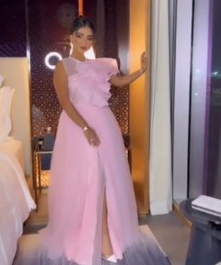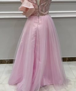 الفخامة بأبهى صورها نجسدها بفستان بمبا من التل التايواني الراقي والاورجنزا الكورية مكرمشة بالجانب وكلفة بانوهات من الخرز الراقي