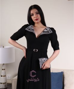 الخامه : كريب استرتش كلوش +تطريز كمبيوتر +فصوص تطريز