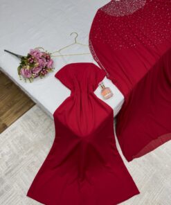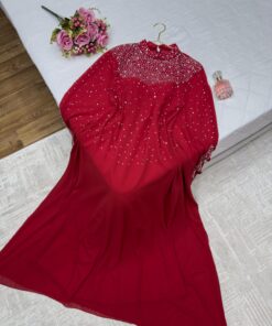 فستان سهرة طويل لون احمر
