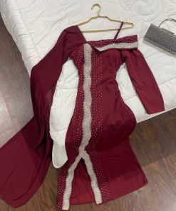 القماش : كريب كلفه تطريز + فصوص كبس