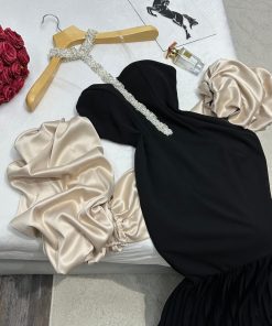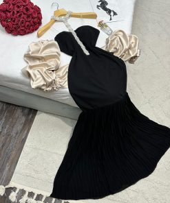 فستان سهرة اسود كريب لكرا