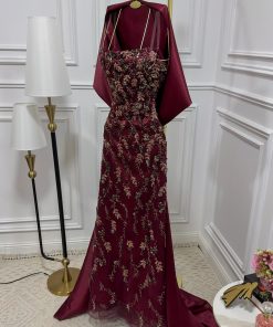 فستان سهرة بذيل طويل فخم