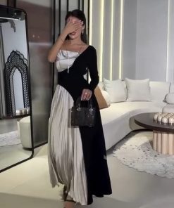 فستان سهرة لون اسود مع بيج فخم وأنيق