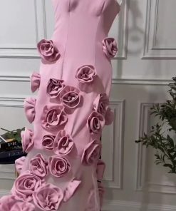 فستان سهرة وردي طويل