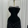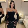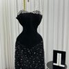 فساتين سهرة سوداء مطرزة باللؤلؤ