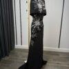 تألّقي بإطلالة فاخرة لا مثيل لها مع فستان سهره أسود ملكي بتصميم أنيق وتطريز يدوي فاخر من الترتر اللامع.