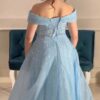 فستان بإطلالة ملكية سماوي فخم