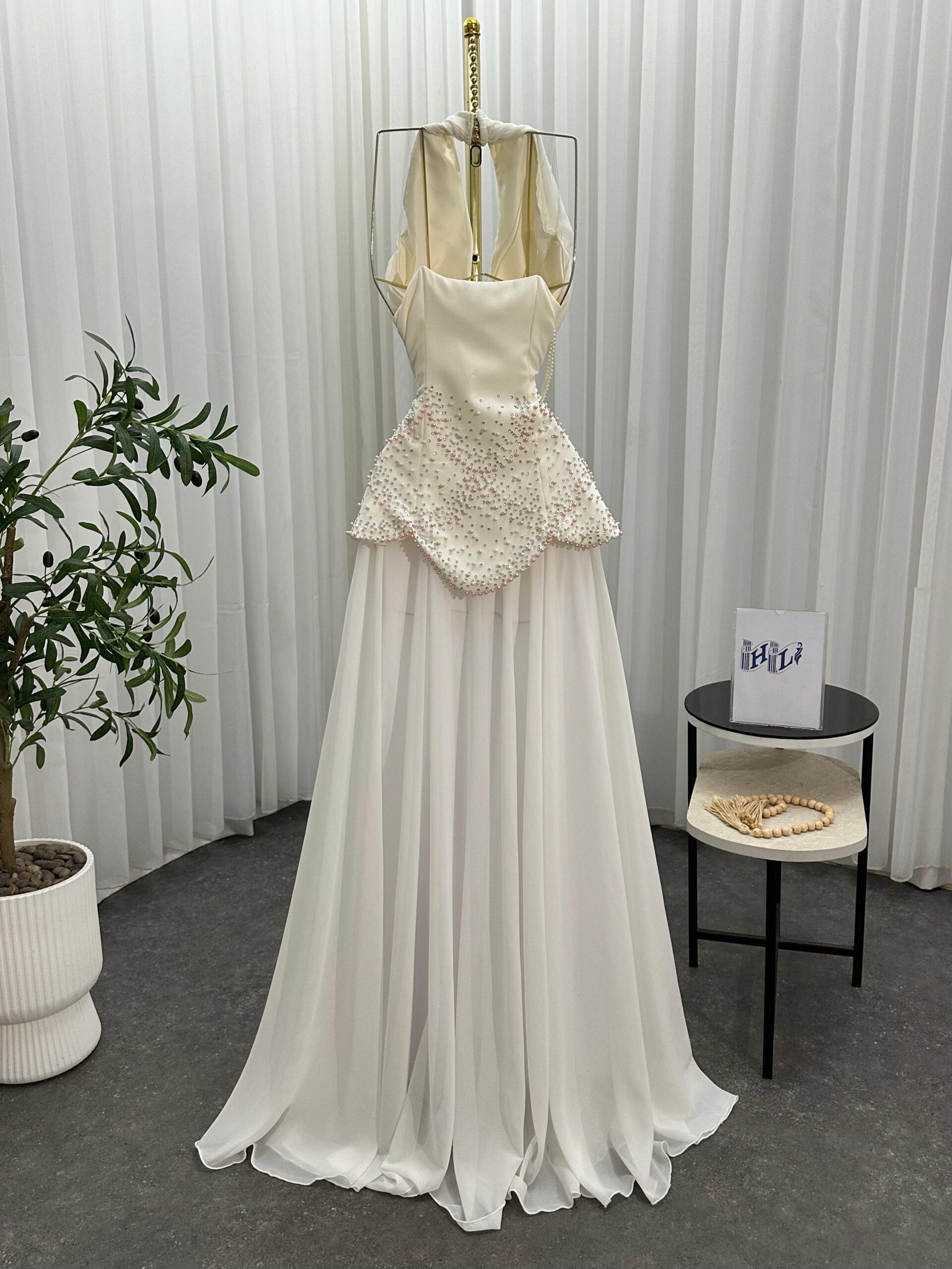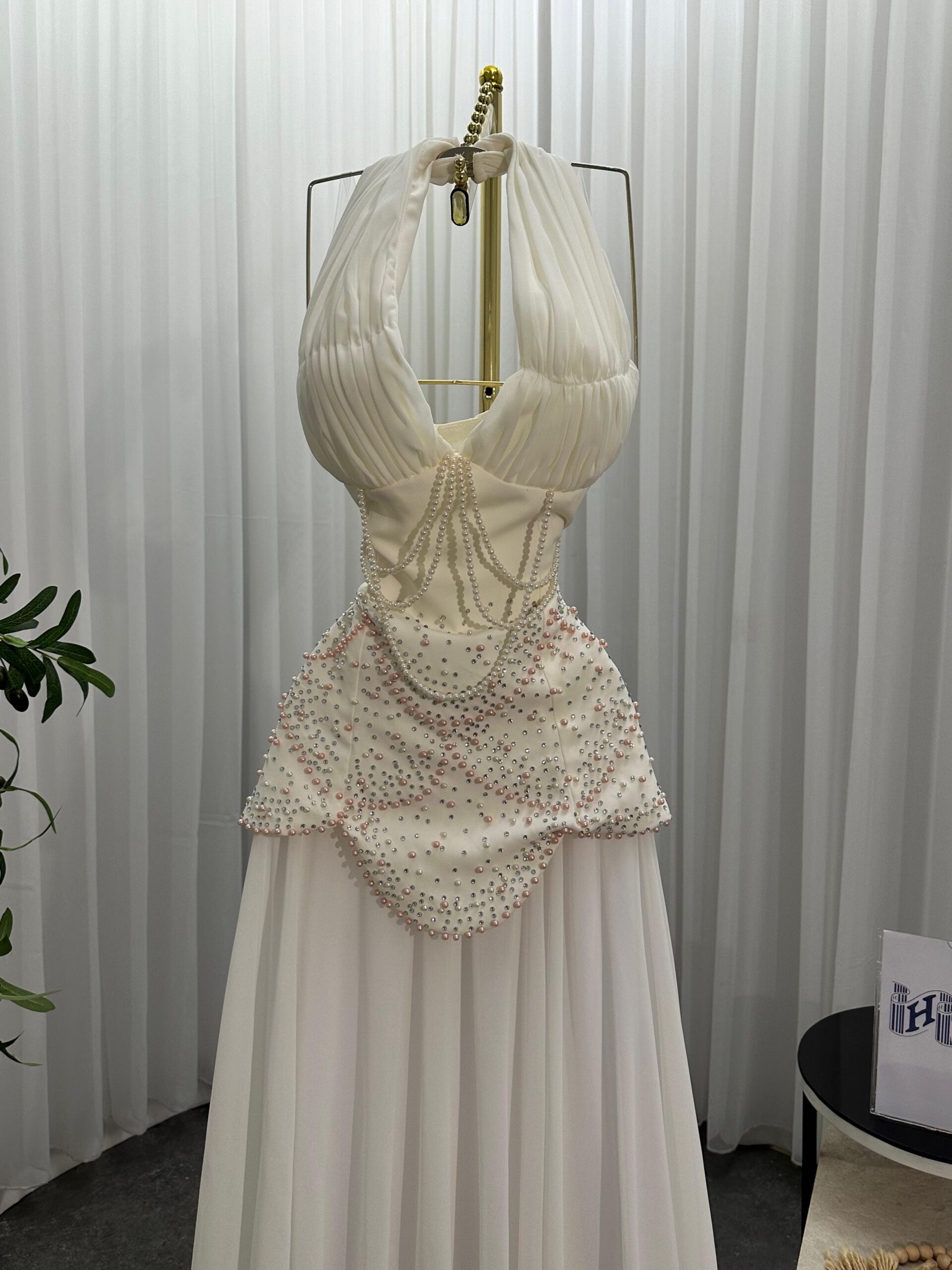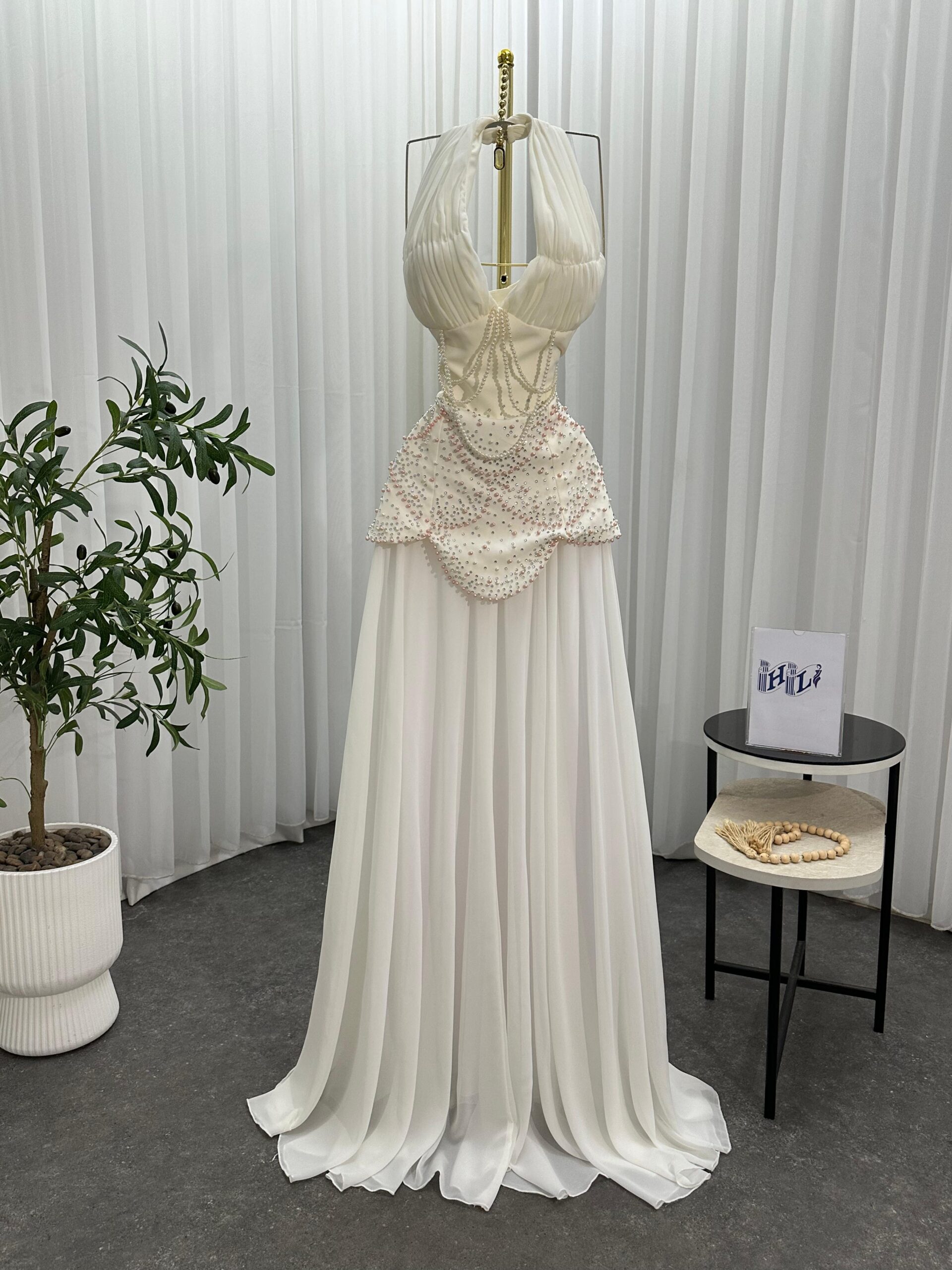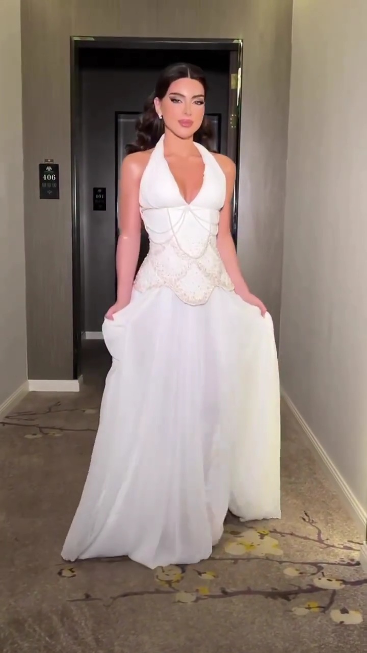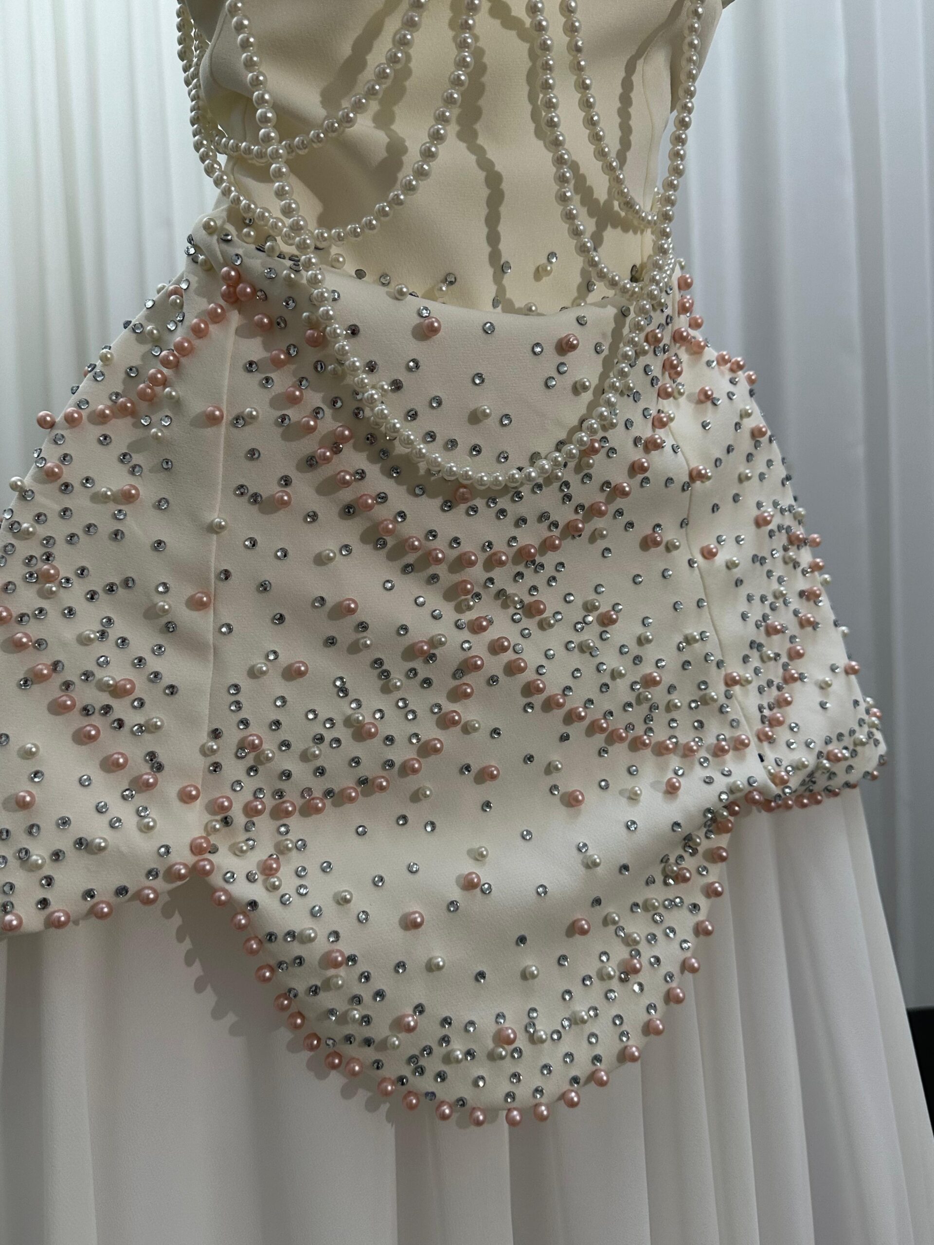 لإطلالة تجمع بين النقاء والفخامة، نقدم لكِ هذا الفستان الأبيض الأنيق الذي يجسد المعنى الحقيقي للرقي. تصميمه مستوحى من الإطلالات الملكية العصرية ليمنحك حضورًا يخطف الأنظار في المناسبات المميزة.