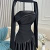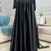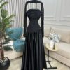 إذا كنتِ تبحثين عن إطلالة فخمة تجمع بين الرقي والنعومة، فإن هذا الفستان الأسود الساتان هو خيارك الأمثل. تصميمه المبتكر يمنحكِ مظهرًا ملكيًا يعكس الأناقة العصرية، لتكوني محط أنظار الجميع في أي مناسبة.