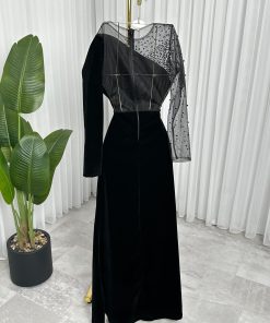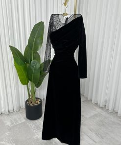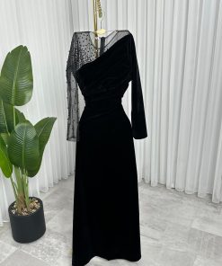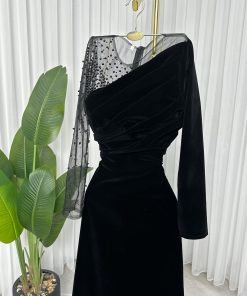 فستان سهرة أسود جوخ