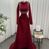 لإطلالة ملكية تليق بالذوق الرفيع، نقدم لكِ هذا الفستان السواريه الخمري الفاخر بتصميم أنيق يجمع بين البساطة والفخامة. يتميز بقصة عصرية راقية وأكمام طويلة، مع تطريز لامع يضفي لمسة ساحرة على إطلالتكِ في جميع المناسبات المميزة.