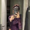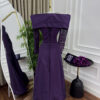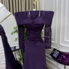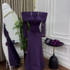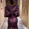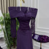 فستان سهرة بنفسجي بكم دانتيل وتصميم ملكي بأكتاف عريضة