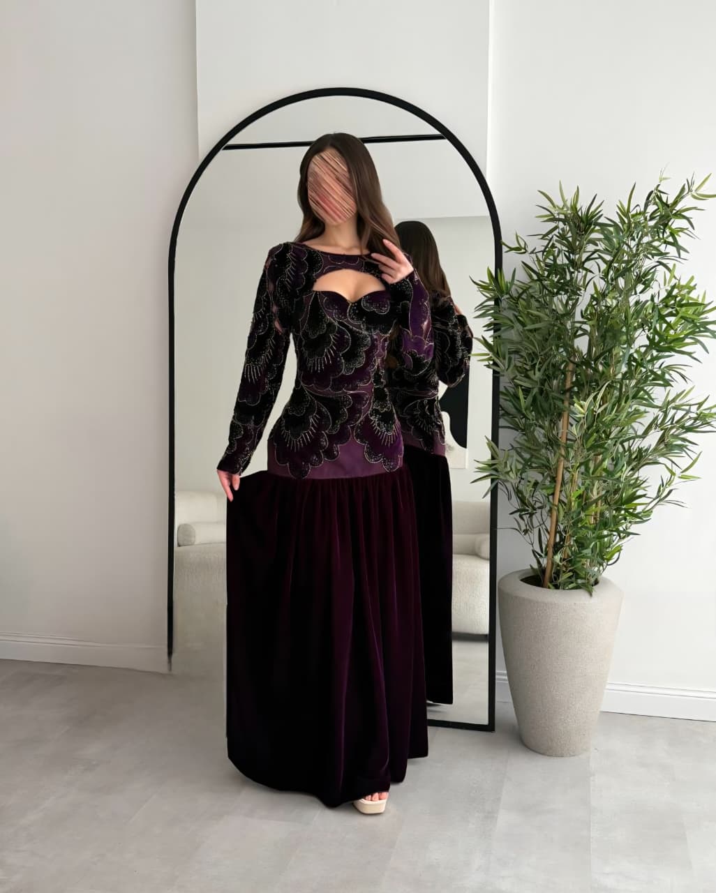 القماش| صدريه قطيفه تطريز خرز ولول بطانه باربي تنوره مخمل كوري كلوش