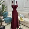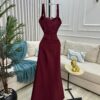 إذا كنتِ تبحثين عن فستان سهرة أنيق يمنحكِ إطلالة فاخرة في مناسباتك الخاصة، فهذا التصميم هو خيارك المثالي! يتميز الفستان بلونه العنابي الملكي الذي يعكس الفخامة والرقي، مع تصميم عصري يعانق تفاصيل الجسم برقي ويمنحكِ مظهراً ساحراً.