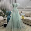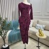 يتميّز الفستان بنقشة سوداء دقيقة تضيف عمقًا وأناقة للتصميم، وتبرز جمال اللون العنابي بطريقة راقية تناسب السهرات والمناسبات الرسمية.