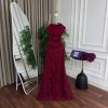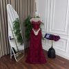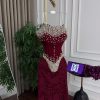 فستان سهرة عنابي مطرّز بالكريستال مع دانتيل فاخر تصميم أنثوي راقٍ