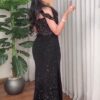 فستان سهرة فاخر باللون الأسود للمناسبات