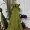 فستان سهرة فاخر بلون زيتي بتطريز يدوي وعقدة أنيقة