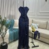 فستان سهرة كحلي مطرز – فخامة هادئة بإطلالة أنثوية راقية