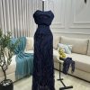 فستان سهرة كحلي مطرز بالترتر تصميم أنيق بقصة كورسيه للمناسبات الراقية
