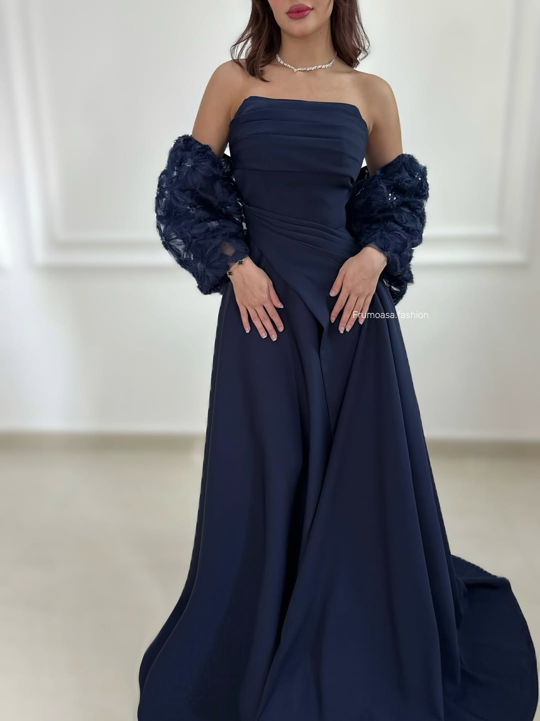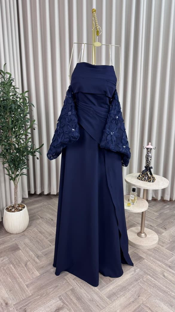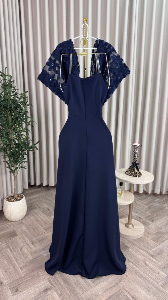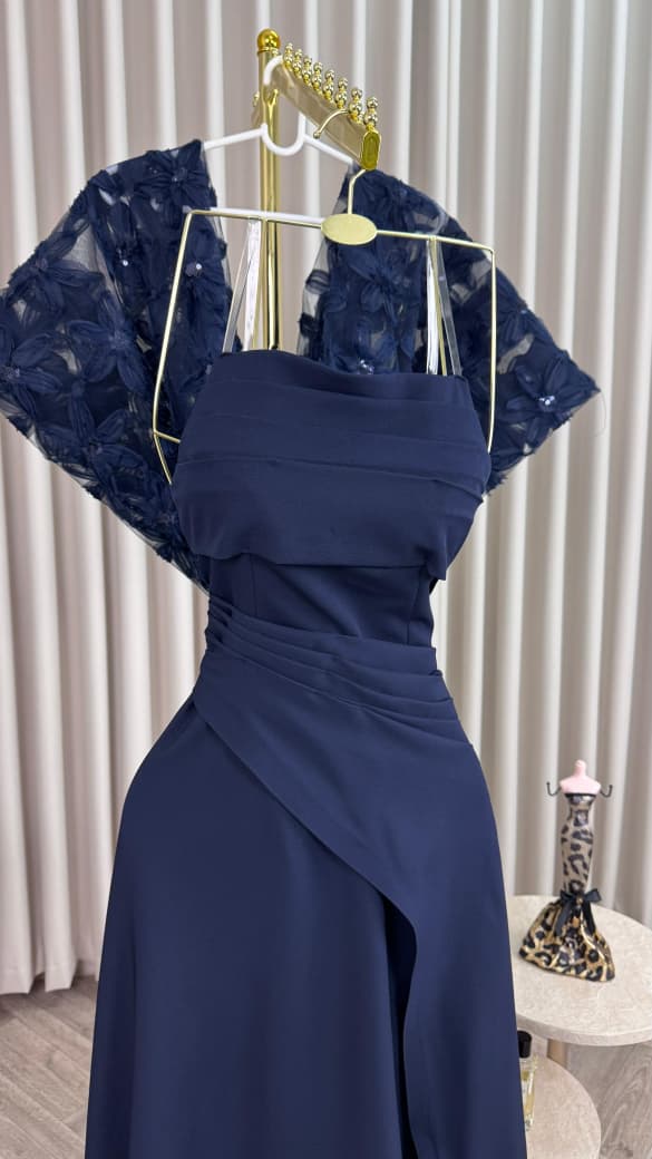 فستان سهرة أنيق باللون الكحلي من متجر روزيتا – فخامة وأنوثة في إطلالة واحدة