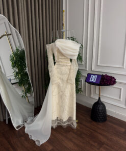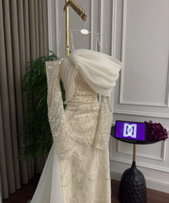 يُعد فستان “روزيتا” هذا من أجمل القطع التي تجمع بين الأناقة والتفاصيل الفاخرة. يتميز الفستان بلونه الأبيض الكريمي الذي يضيف لمسة من الرقة والنعومة، مما يجعله مثاليًا للمناسبات الرسمية والراقية مثل الأعراس أو السهرات الفاخرة. تصميم الفستان يعكس براعة الحرفيين الذين اهتموا بكل التفاصيل ليبرزوا جمال المرأة بأبهى صورة.