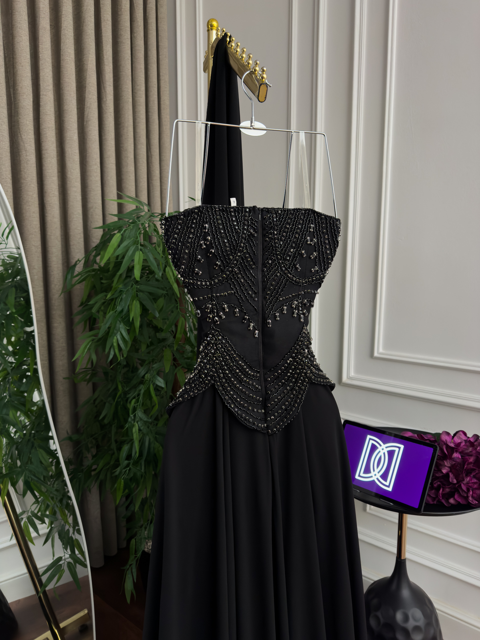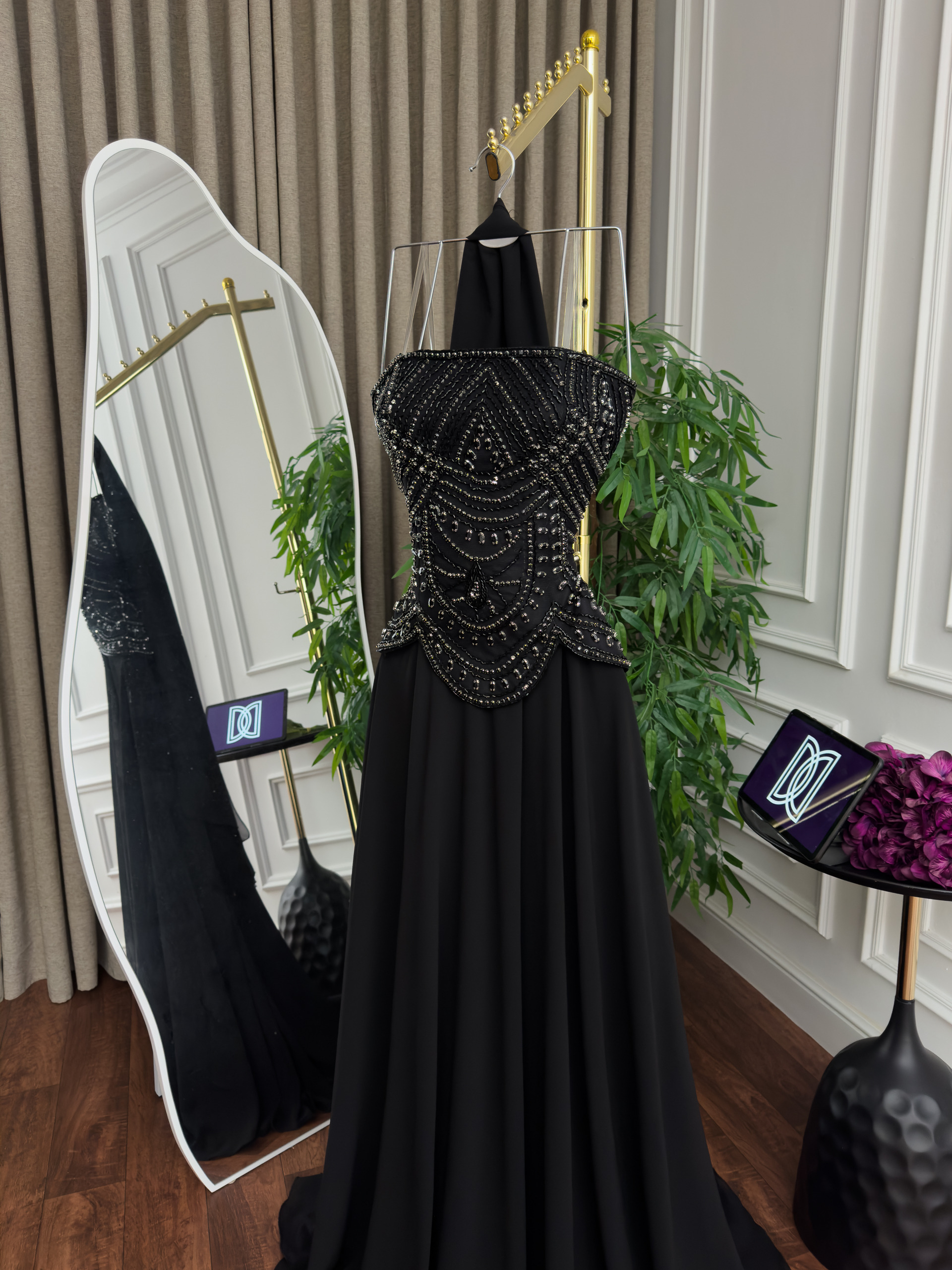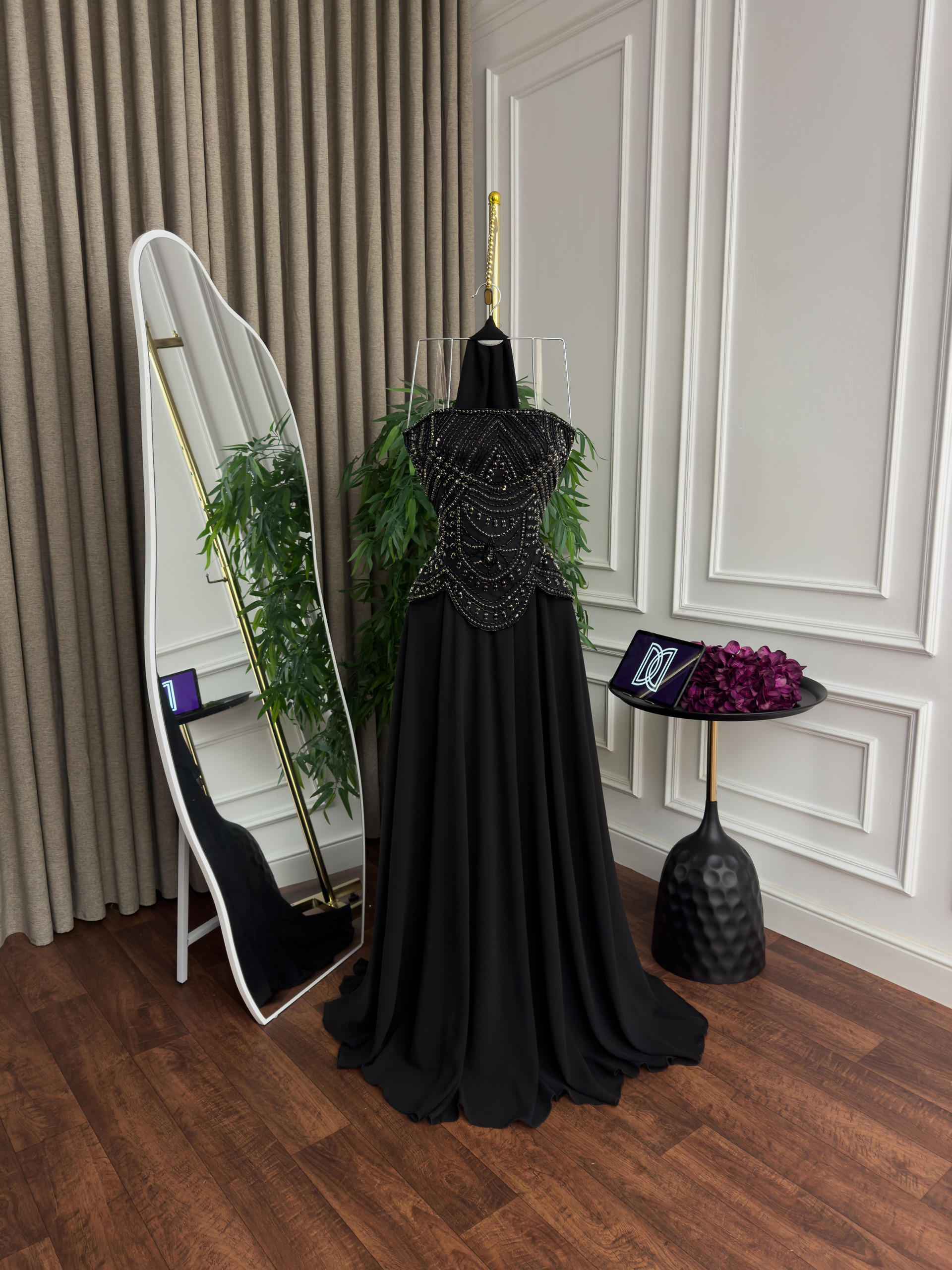 فستان سهره شيفون تطريز يدوي كلوش دبل