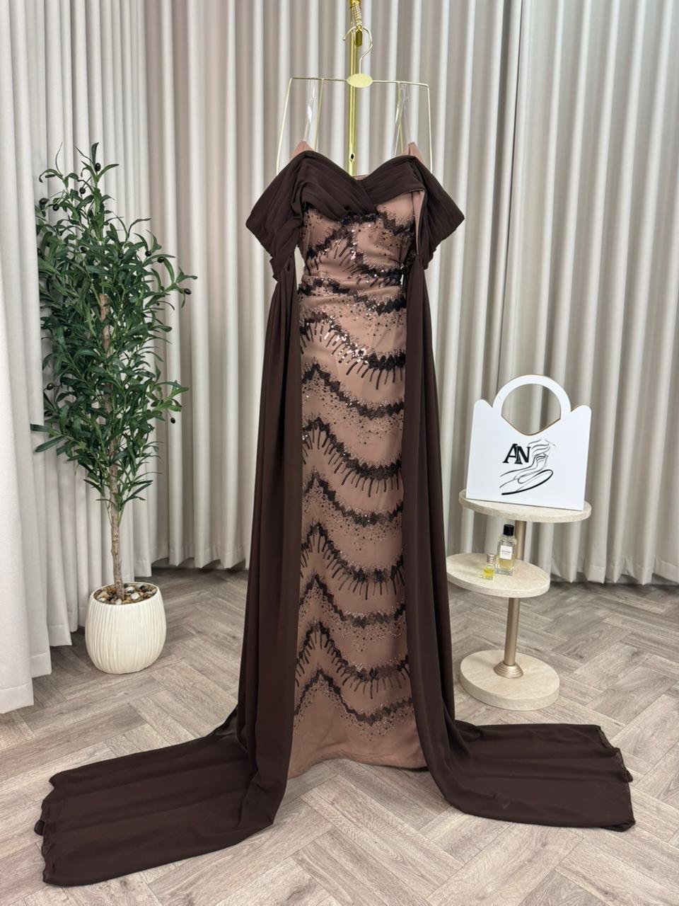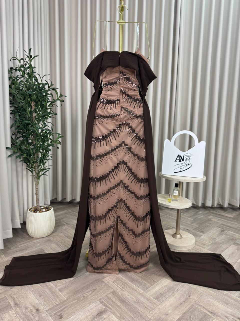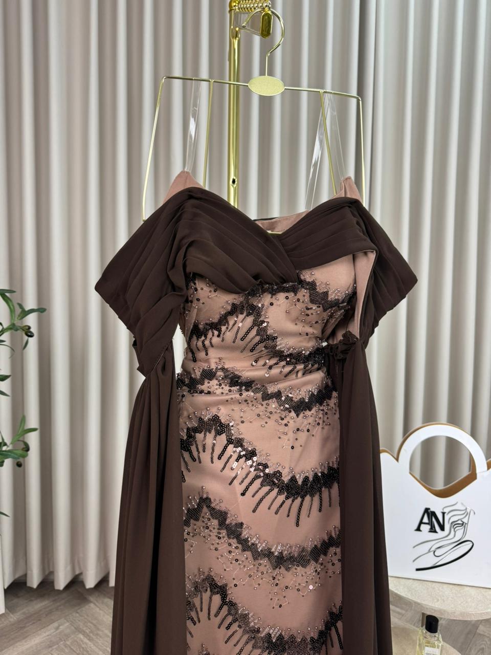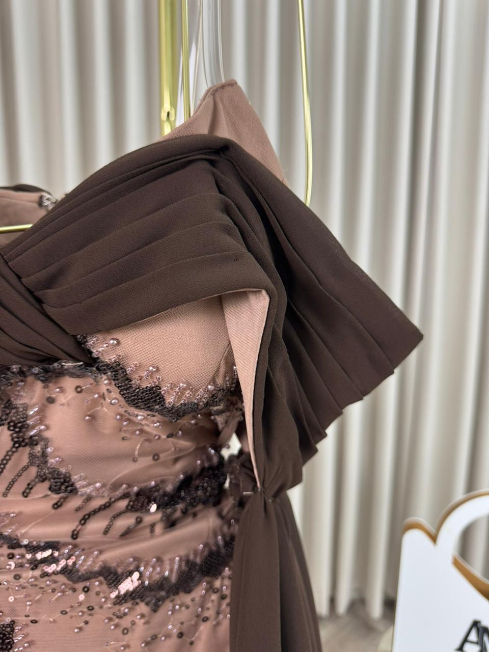 فستان سهرة بني فاخر من متجر روزيتا – فخامة تليق بذوقك الرفيع