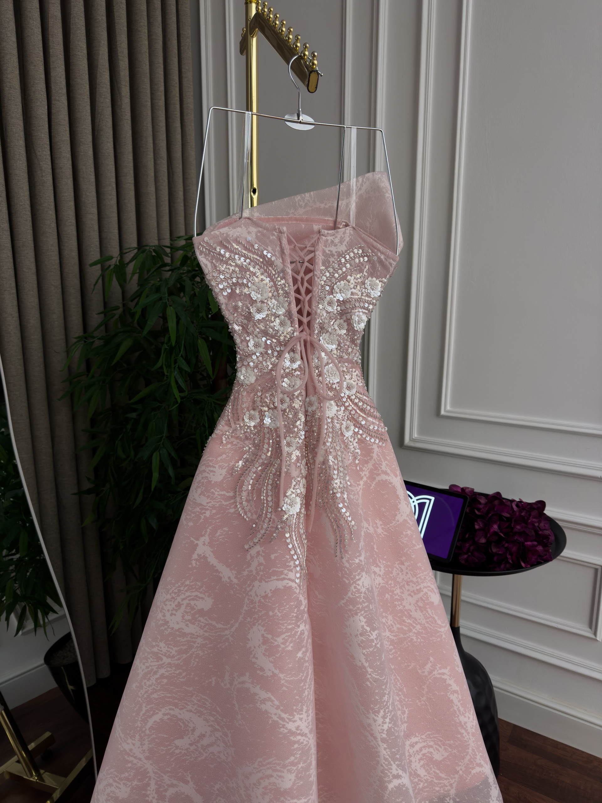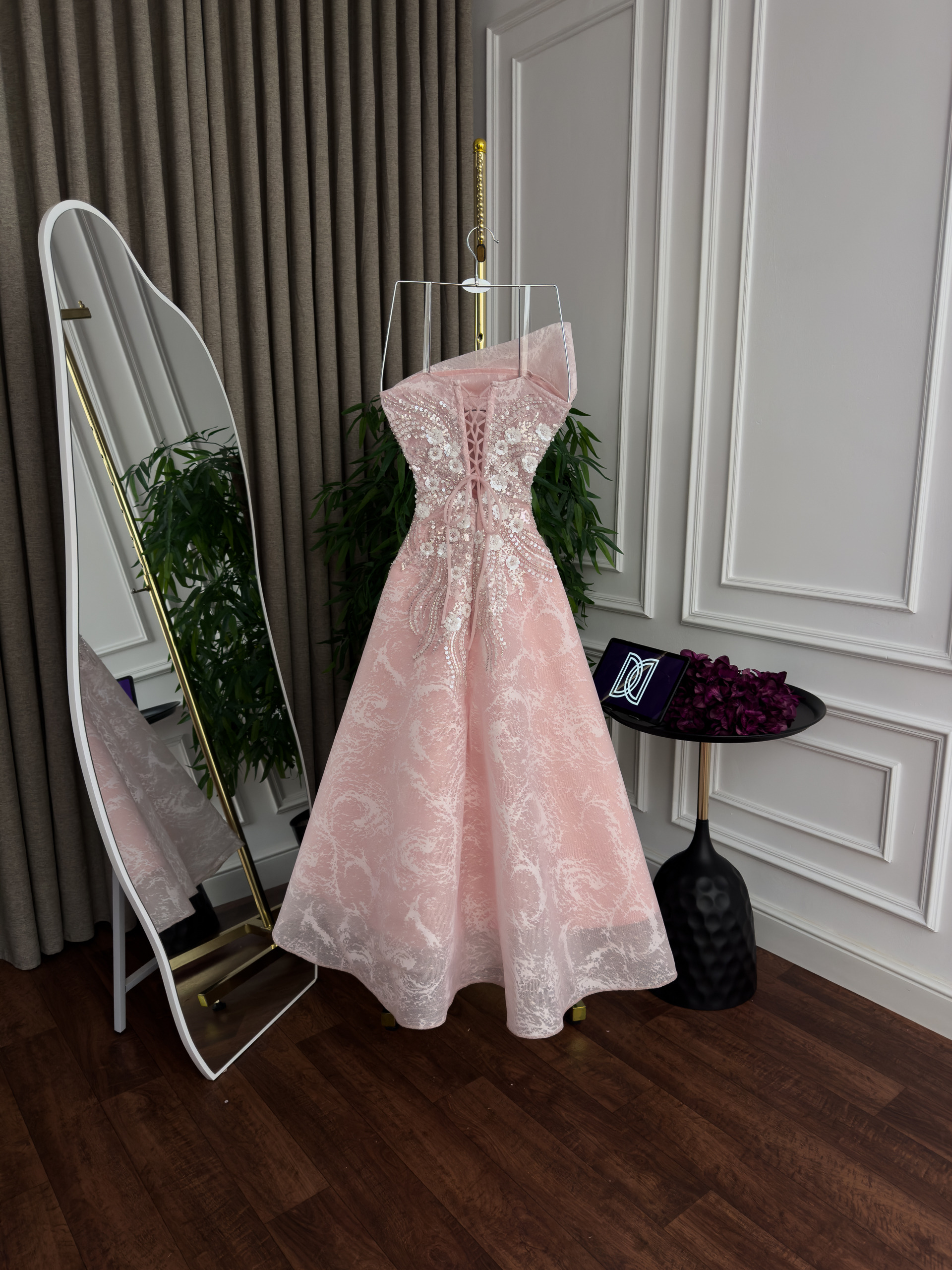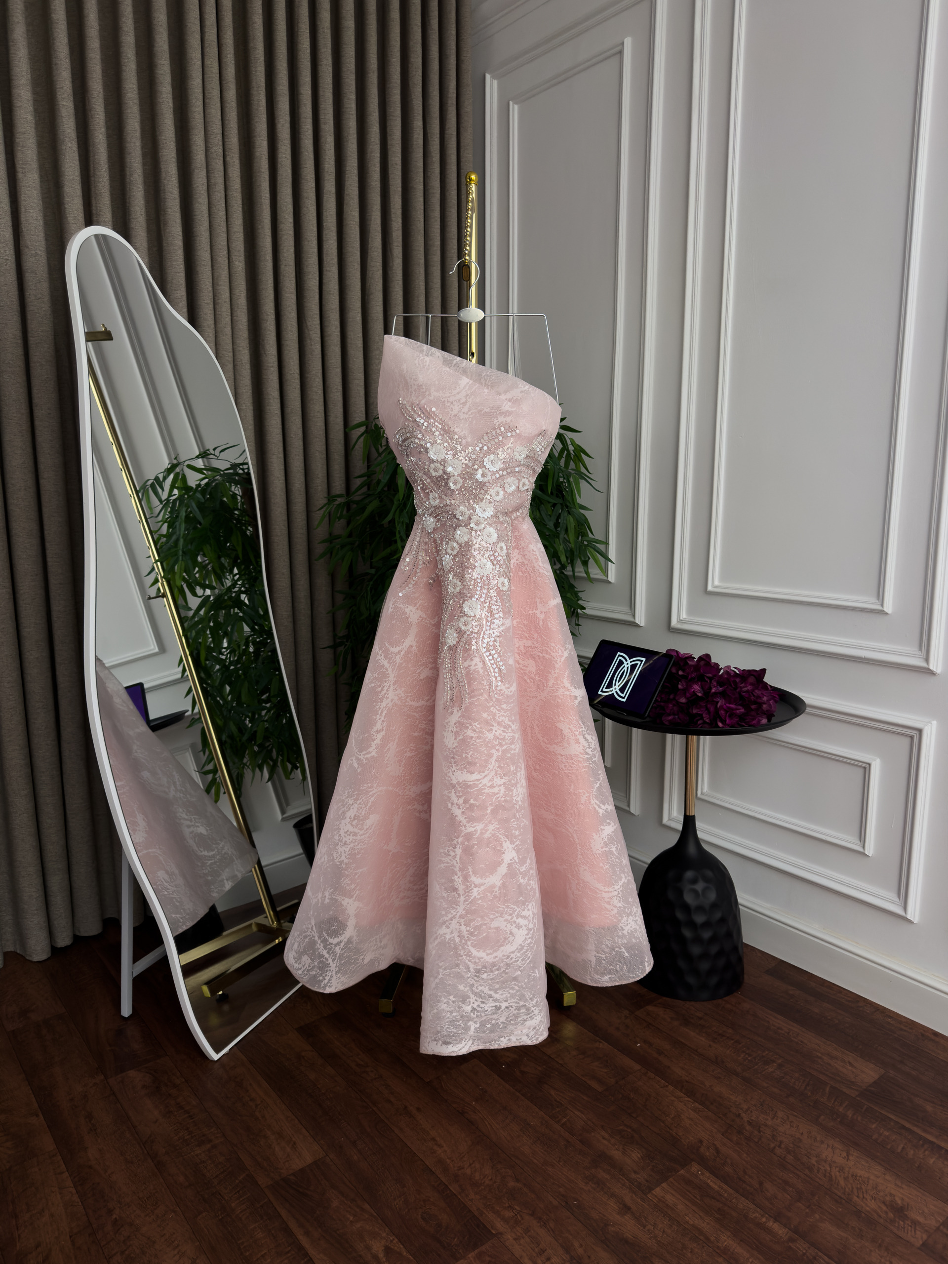 فستان سهره دانتيل جيبون كلوش ميدي كلفه تطريز بخرز