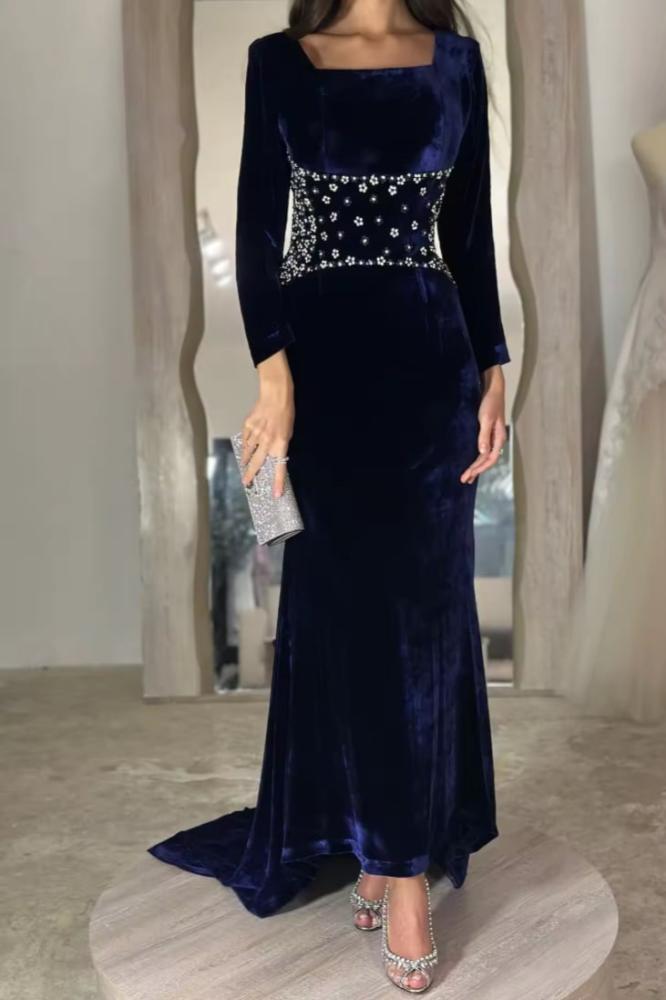 فستان سهرة مخمل كحلي