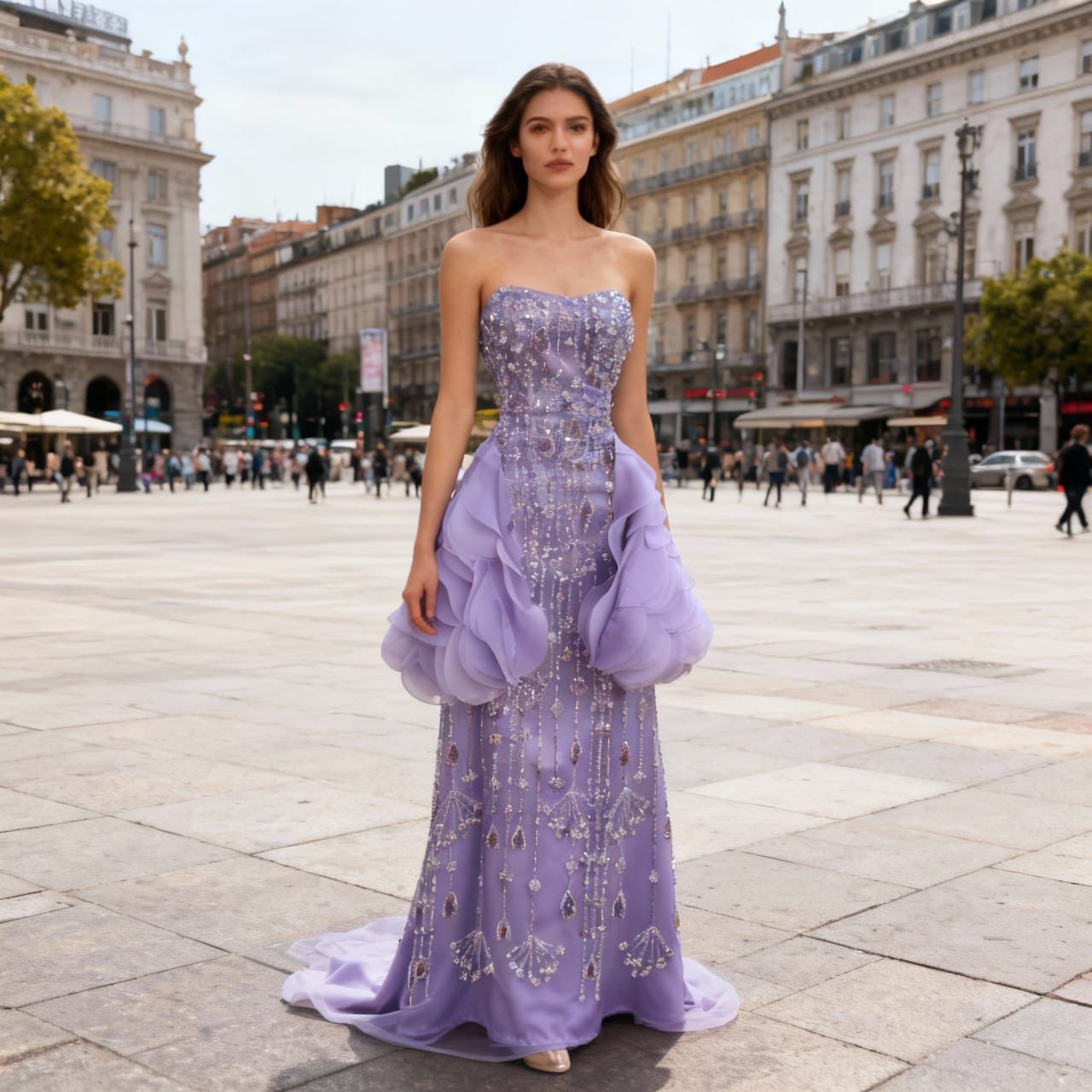 فستان سهرة موف فاخر من متجر روزيتا – أنوثة تأسر الأنظار