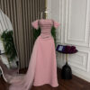 فستان سهرة وردي بلمسات كريستالية – لمسة من الأناقة والرقي