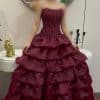 فستان سهرة باللون البني الغامق يمنحك إطلالة فخمة وساحرة في جميع المناسبات داخل السعودية. يتميز بتطريزات لامعة على الصدر تضيف لمسة أنثوية راقية، مع ذيل أورجنزا فاخر يخلق حركة انسيابية وأناقة ملكية.