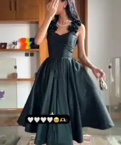 فستان سهرة أسود بتصميم ملفوف وتطريز فضي بنقوش زهور للمناسبات الراقية