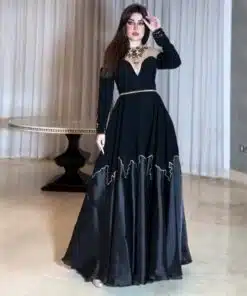 للأمسيات الشتوية أو السهرات الرسمية، يفضل اختيار قماش أثقل مثل المخمل أو الحرير المخملي ليضفي لمسة فخامة متناسقة مع طابع المناسبات في السعودية.4. فساتين مع تطريزات بسيطة