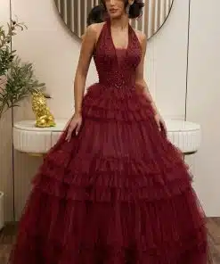 اختاري من بين تشكيلة واسعة من فساتين سهرة حمراء طويلة بتطريزات فاخرة وخامات فاخرة، مثالية للسهرات الفاخرة وحفلات الزفاف.