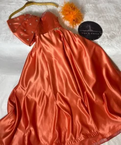 برتقالي بتطريز وريش مميز للمزيد من الأناقة