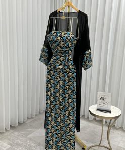 الخامة/ استرتش بتطريز كمبيوتر مع بشت شيفون جورجيت