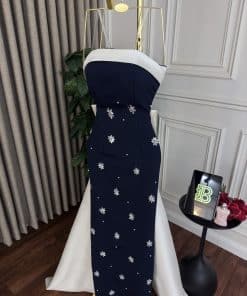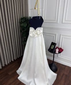فستان سهرة مميز بذيل طويل يمنحك إطلالة فخمة ومميزة في المناسبات. يتميز بتصميم أنيق وقصة جذابة تضيف لمسة من الرقي إلى المظهر. مناسب للحفلات والسهرات الراقية.