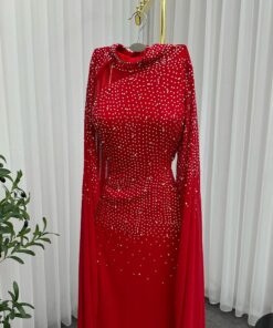 فستان سهرة بوردو وعباءة شيفون أبهري الأنظار بإبطالبوردو .يبرز جمال القوام ومزين بالكاملالذي المنسدلة على شكل عباءةالمناسبات الرسمية السهرات