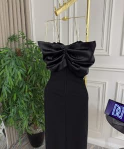 فستان سهرة لون اسود ميد فخم وانيق