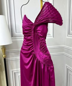 فستان سهرة لون فوشيا مفتوح من تحت