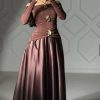 الفستان الوردي مزين بحبات الخرزة التي تزين القماش وتضيف لمسة من التألق والنعومة. تم تصميم الفستان ليعكس الفخامة في كل تفاصيله، مما يجعله الخيار المثالي لحضور حفلات الزفاف، السهرات الراقية، أو أي مناسبة خاصة.