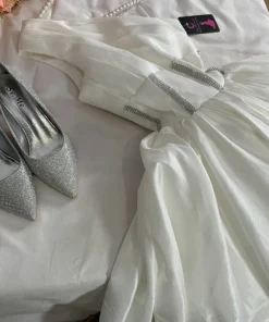 الخامه :تفته شانتون دبل كلووووش 6 متررر + فيبر نافش اسفل الفستان + كرستال راااقي بالخصر + مبطن جيبون دبل