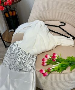 الخامه /تفته ميكادو + شيفون جورجيت + تطريز يدوي كرستال