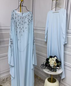الوصف/ جلابيه فراشه خام شيفون مزين بالكرستال و الفصوص والخرز بطانه كريب لكرا ناعم