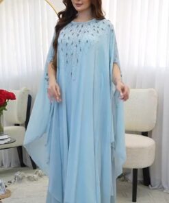الوصف/ جلابيه فراشه خام شيفون مزين بالكرستال و الفصوص والخرز بطانه كريب لكرا ناعم