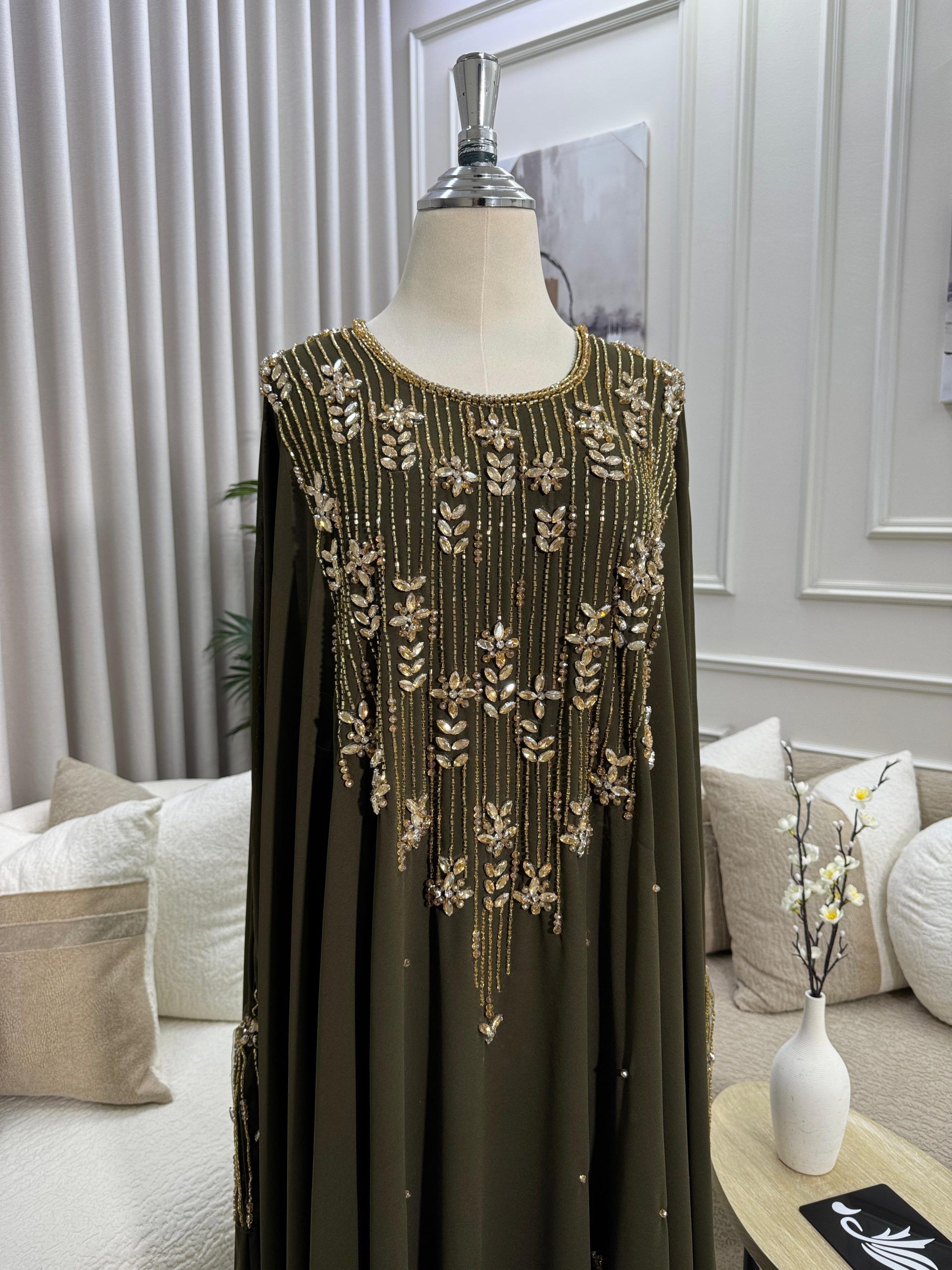 لإطلالة تجمع بين الفخامة والنعومة بأسلوب راقٍ، يقدّم متجر روزيتا السعودي هذه الجلابية الزيتونية الأنيقة المصممة بذوق شرقي فاخر يناسب المرأة الباحثة عن التميّز والراحة في آنٍ واحد.