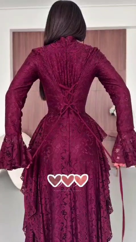 للباحثات عن الجمال والاناقة دانتيل الموسم ولون الشوكولاتة والتوتي الموسمي قصة فرنسي مع الأكمام